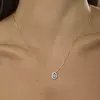 Conjunto Colar e Brinco com Pingente Cristal Azul Claro Gota e Redondo Banhado a Ródio 40CM