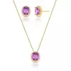 Conjunto Brinco e Colar com Pingente Oval em Cristal Cravejado de Zircônia 45CM