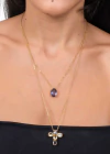 Colar Escapulário Duas Cruzes Cravejadas em Zircônias Banhada a Ouro 18K 70CM