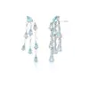 Brinco Pêndulo com Cristais Azul Claro e Pedra Reconstituída