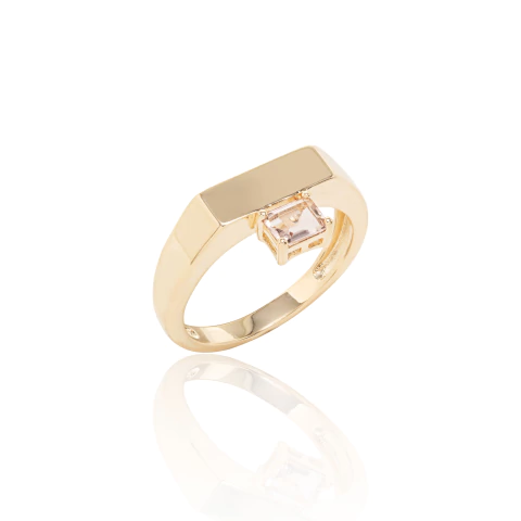 Este anel é perfeito para ser a peça protagonista em produções minimalistas ou monocromáticas, trazendo um toque de cor e luxo. Combine-o com brincos pequenos dourados ou pontos de luz para um equilíbrio elegante. Harmoniza especialmente bem com tons como nude rosado, vinho, branco e preto.