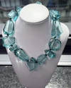 Colar Maxi Resina com Pingente Oval Dourado com Detalhe em Turquesa 50CM